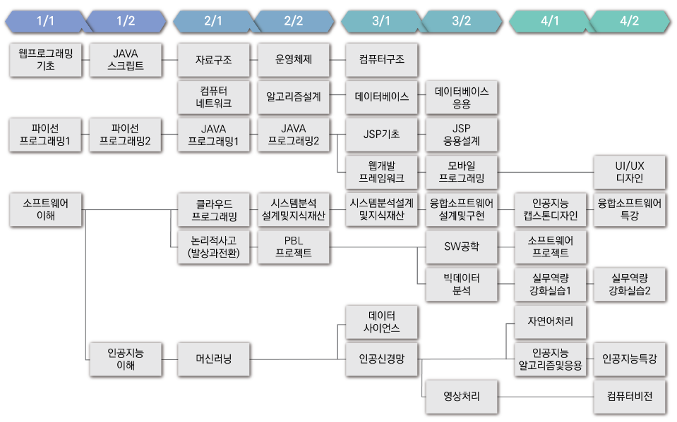 이수체계도 및 졸업요건 HOME 학과소개 교과과정 이수체계도 및 졸업요건 프린트 이수체계도 및 졸업요건 교양영역 기초자연과학영역 전공영역 이수체계도 및 졸업요건 이수체계도 졸업요건(2020학년도 입학자) 졸업요건(2020학년도 입학자)에 대한 표 기초교양과정 전공과정 일반 선택 졸업 이수 학점 기초 교양 핵심 교양 기초 과학 선택 교양 합계 단일 전공 2개 전공 3개 전공 16 13 6 10 45 60 36 36 25~ 130